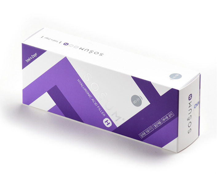 Sosum H is a stabilized hyaluronic acid- (HA)-based filler with high cross-linking rate. Special technology called “Low Temperature Stabilization Reaction (LTSR)” is used in the production of Sosum fillers; it ensures minimum distance between the HA molecules meaning high density and finely packed molecular structure. The resulting HA is more resistant to degradation compared to other HA fillers, which means longer aesthetic effect duration. Two-step purification is used for removal of residual BDDE, which minimizes the risk of allergic reactions and other side effects. High elasticity and low injection force of the HA gel ensure uniform distribution of the filler during injection thus reducing the risk of gel lumping, edema and bruises after the procedure. With Sosum fillers, the injection procedure is now painless and also comfortable for both the client and the specialist.