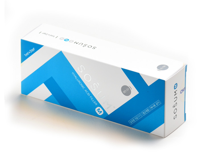 Sosum M is a stabilized hyaluronic acid- (HA)-based filler with high cross-linking rate. High density and finely-packed molecular structure of the gel are achieved due to the “Low Temperature Stabilization Reaction (LTSR)” technology. The Sosum fillers have outstanding resistance to degradation meaning longer effect duration, as well as high elasticity and viscosity values, which ensure even distribution of the gel in the dermal layers. Zero level of residual BDDE is achieved through a two-step purification process. Low injection force of the HA gel ensures uniform and painless distribution of the filler during injection.